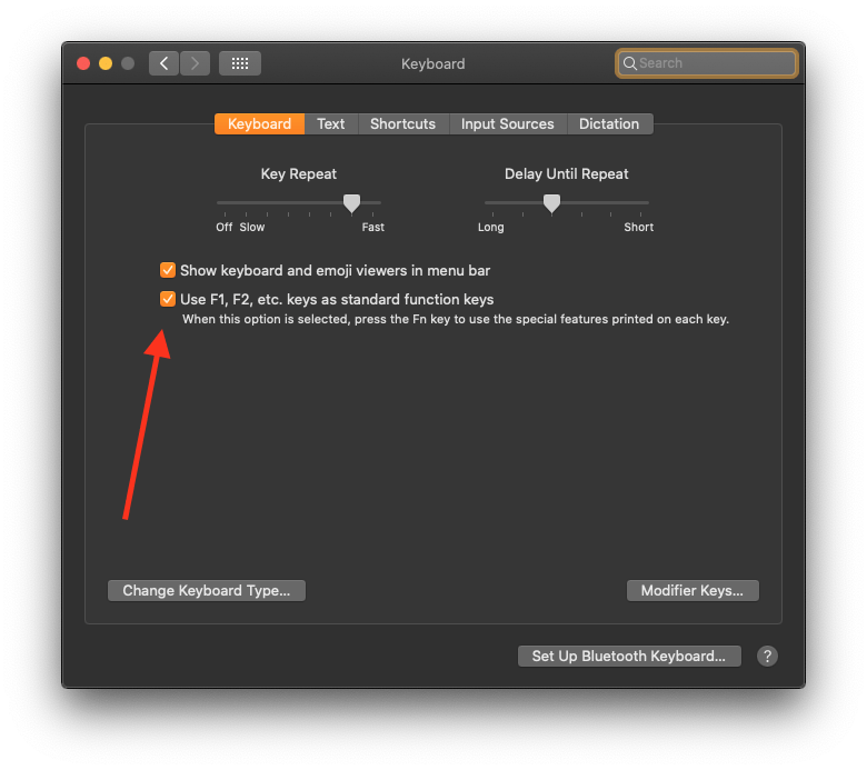 Use F1, F2, etc. keys as standard function keysinSystem Preferences/Keyboardto gain access to standard F keys: